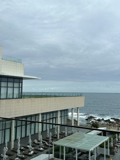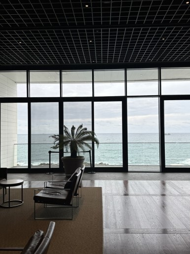 통로를 따라 쭉 가다보면 수영장과 바다가 보이는 로비가 나온다